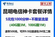 昆明人速抢!电信5元神卡=千分钟+不限量+500兆