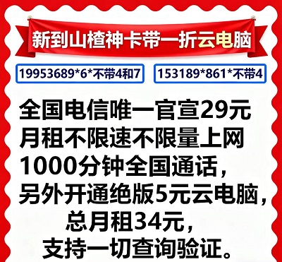 以为29元不限速不限量就够顶了?山楂神卡直接放大招!加5元即可开通绝版一折云电脑,总月租仅34元!云电脑功能强大,办公、娱乐、学习一机搞定,随时随地轻松调用高性能配置,再也不用背着沉重的笔记本出门!一张卡,两种极致体验,性价比直接拉满!
