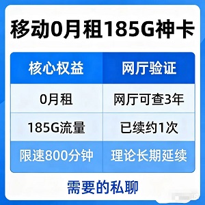 🚨 捡漏预警!中国移动0月租巨无霸卡! 185G高速流量+800分钟通话,月租0元!