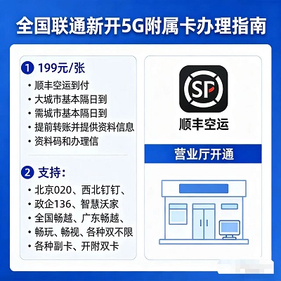 无论是北京020、西北钉钉这类地域特色、行业特色套餐,还是政企136这类企业专属套餐,亦或是智慧沃家、全国畅越、广东畅越、畅玩、畅视等大众热门套餐,甚至是各种双不限套餐、各类副卡,这款5G附属卡都能完美适配,无需更换主卡套餐,无需额外叠加费用(具体以套餐规则为准),只需199元,就能开通一张属于自己的5G附属卡。